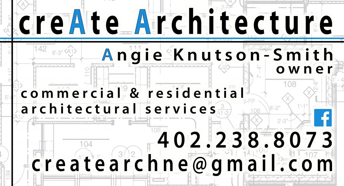 Create Architecture is an Omaha Nebraska based firm founded in 2013 by Angie Knutson-Smith. With over 20 years’ experience in a variety of building projects, Create Architecture has established itself as a superior performer in client centered architecture.
